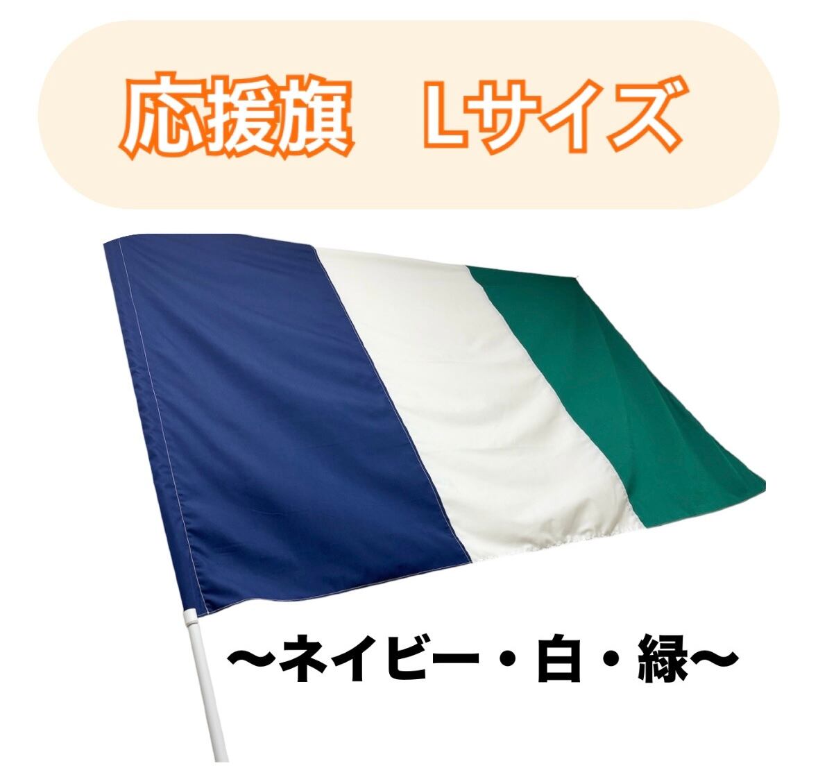 3色旗・Lサイズ~ネイビー・白・緑~1.5m×1m×パイプ140cm /応援グッズ サッカー 野球 スポーツグッズ 大旗 応援旗 生地